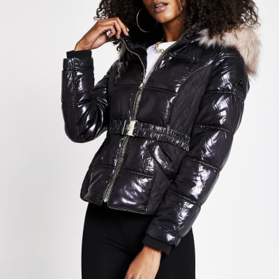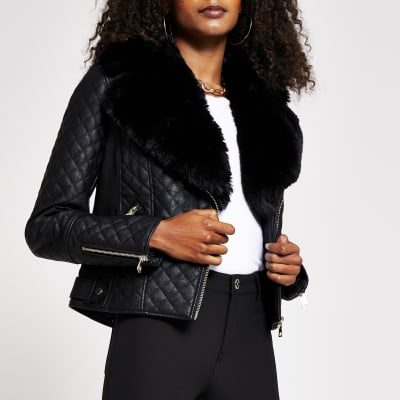 Related : River Island Camel Biker Faux Fur Collar Coat : Black faux leather panelled racer jacket..