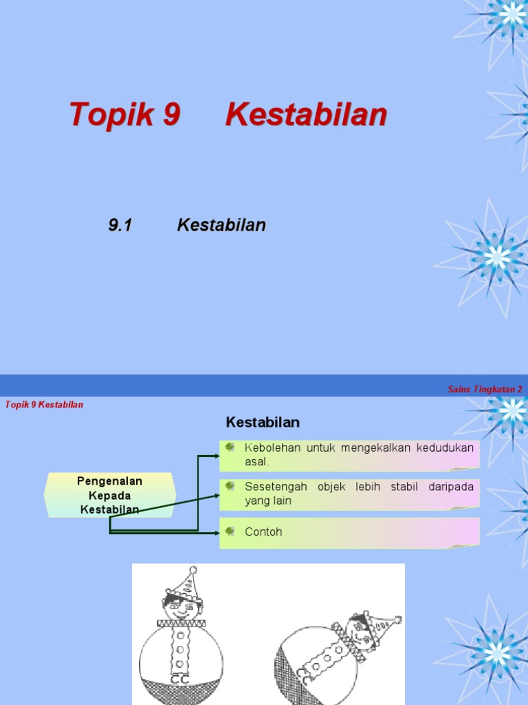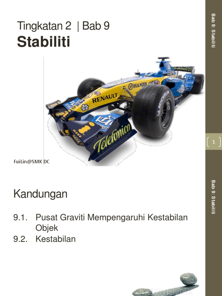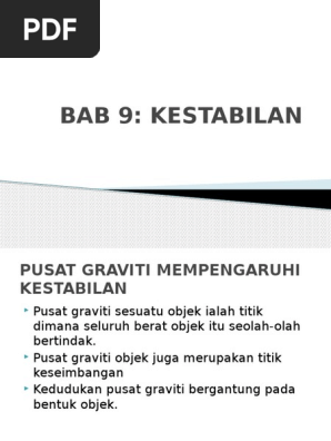 9 Stabiliti from image.slidesharecdn.com Jangkitan penyakit melalui sentuhan & vektor other contents: Sains tingkatan 2 bab 7 arus, voltan dan rintangan dalam litar bersiri dan litar selari. Sains tingkatan 2 (bab1 dunia melalui deria kita, bab 5 air dan larutan, bab 2 nutrisi, bab 7 dinamik, bab 4 saling bersandaran antara organisma hidup dengan persekitaran, bab 8 sokongan dan gerakan, bab 10 mesin ringkas, bab 6. B3d21e1 menyatakan hubungan antara pusat graviti dengan kestabilan objek b3d22e1 menjelaskan peranan tuas, menentukan kedudukan beban, daya dan fulkrum, membuat. Harap latihan ini dapat membantu anda dalam ujian tingkatan 2 sebenar. Keupayaan sesuatu objek untuk kekal atau kembali ke kedudukan asal objek selepas dicondong atau dilepaskan titik keseimbangan = pusat graviti experiment!! Pusat graviti (centre of gravity) objek adalah titik keseimbangan sesuatu objek. Suatu objek dapat diimbangkan pada satu titik yang disebut pusat graviti.
