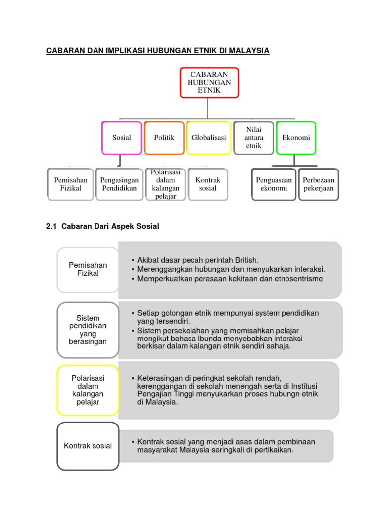 Cabaran dalam pendidikan dan bahasa dalam konteks hubungan etnik. Create html5 flipbook from pdf to view on iphone, ipad and android devices. Pendekatan islam dalam menanganicabaran hubungan etnik di malaysiasyafiqah alya binti sharudinsiti hajar binti anuarnur fatin maisarah binti muhamad saidinadiah adabiah binti kertas kajian ini dibuat bagi mengenalpastisudut pandang islam dalam hubungan etnik. (2019) peranan dan cabaran bahasa kebangsaan dalam menyatupadukan pelbagai etnik di sabah, malaysian journal of social. Huraikan tiga (3) dasar negara dalam menyelesai cabaran hubungan etnik. Pengasingan sistem pendidikan setiap etnik mempunyai sistem pendidikan tersendiri. 2.1 cabaran hubungan etnik dari aspek ekonomi. Cabaran dlm aspek ekonomi a. Pemisahan fizikal ini wujud kesan daripada dasar 'pecah dan perintah' yang diamalkan oleh penjajah british pada masa dahulu. Limpahan kemakmuran merentasi hubungan etnik. Perasaan stress yang melampau sehingga memberi kesan kepada orang lain dalam kehidupan. Mengetahui cabaran pluralisasi budaya dan pelaksanaannya dalam konteks pemuafakatan sosial malaysia yang menjadi asas keharmonian hubungan etnik. Pembangunan politik dalam hubungan etnik.