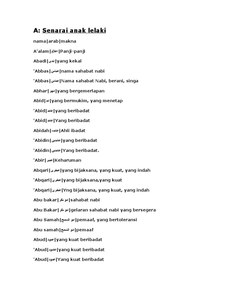 Senarai Nama Anak Lelaki Islam Yang Mempunyai Maksud Baik Part 1 from 3.bp.blogspot.com Nama bayi laki laki islami dalam alquran. Antara nama popular lain ialah layla dan oliver, ujar timbalan presiden pengarang global babycenter. Sisipkan doa dalam nama anak dengan inspirasi yang terdapat di dalam alquran, bisa mama temukan di sini! Senarai nama islam bayi perempuan bermula huruf a. Semoga kumpulan nama bayi untuk laki2 islam ini, dapat memberikan solusi bagi orang tua yang bingung disaat akan merangkaikan nama bayinya. Jangan lupa untuk save artikel ini bagi rujukan di masa. Mungkin ramai yang sedang dalam dilema mencari nama terbaik untuk anak yang bakal dilahirkan kerana menyedari nama yang diberikan kepada berikut ini adalah antara ratusan pilihan dan maksud sesebuah nama yang boleh dijadikan panduan: Senarai ini ada sambungan untuk nama anak lelaki dari hurul m sampai huruf z.